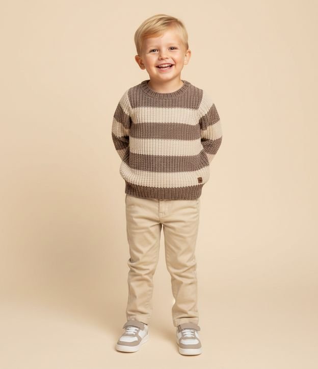 Casaco Infantil em Chenille com Listras em Blocos – Tam 1 a 5/6 Anos Marrom/Bege