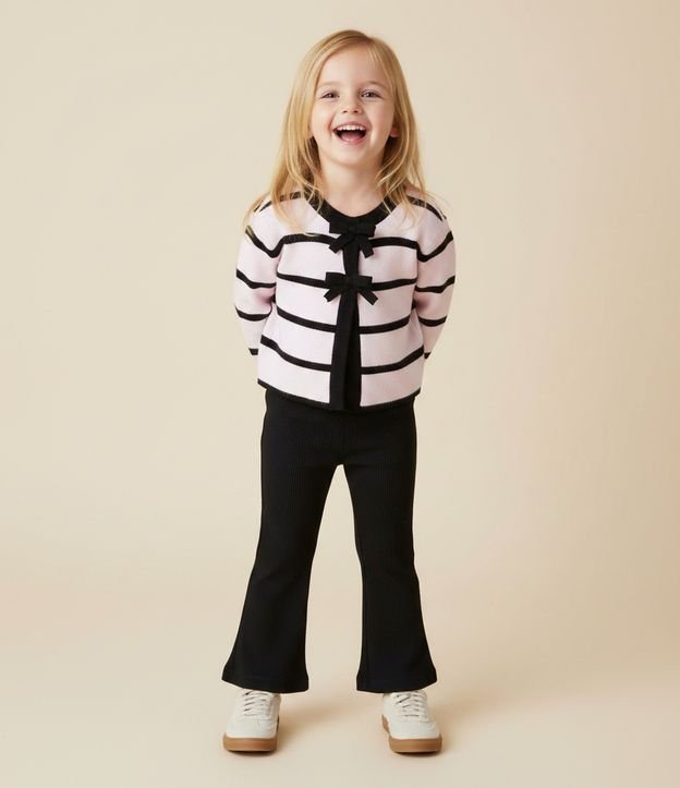 • Casaco Infantil em Efeito Tricô com Listras e Laços Frontais – Tam 1 a 6 Anos Preto/Rosa Claro 1