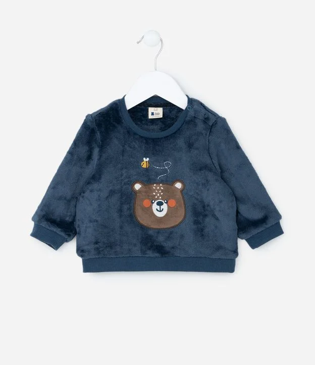 Casaco Infantil em Fleece com Bordado Urso - Tam 0 a 18 meses