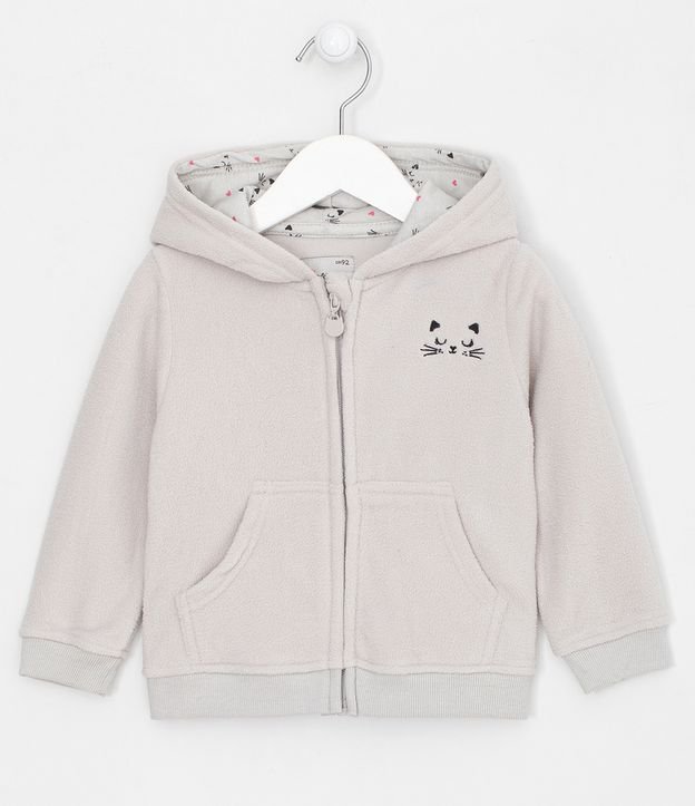 Casaco Infantil em Fleece com Capuz Bordado de Gatinho - Tam 1 a 5 anos