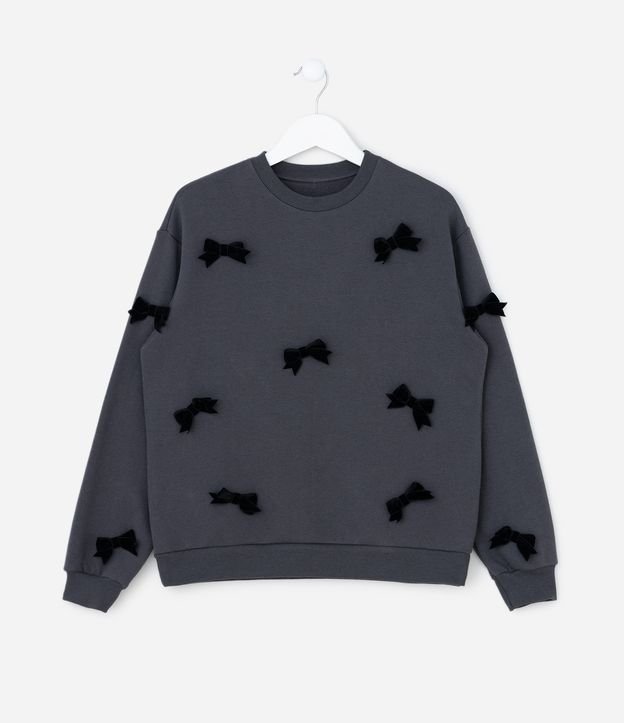 Casaco Infantil em Moletom com Laços Aplicados - Tam 5 a 14 Anos Cinza
