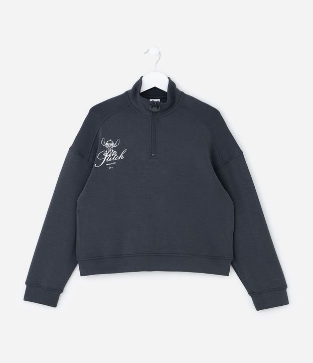 Casaco Infantil Gola Alta com Estampa Stitch Outline – Tam 5 a 14 Anos Cinza Escuro