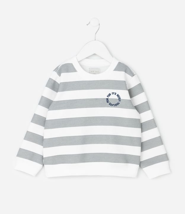 • Casaco Infantil Listrado com Bordado – Tam 1 a 6 Anos Cinza/Branco 1