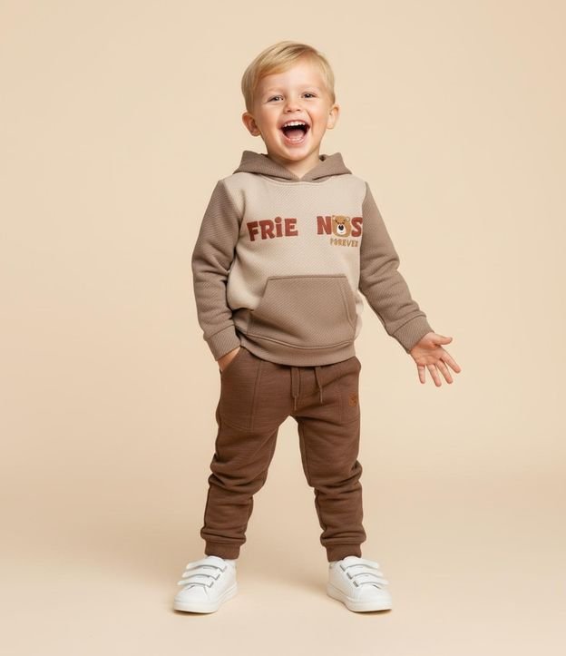 Casaco Infantil Texturizado com Estampa Ursinho - Tam 1 a 6 Anos Marrom
