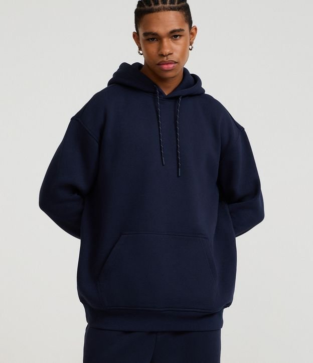 Casaco Relaxed Moletom com Felpa Liso Básico Azul