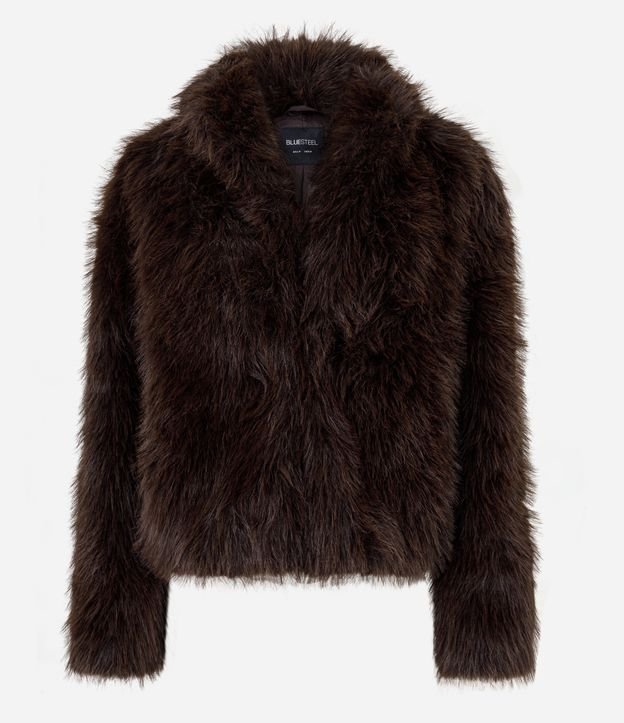 Casaco Robusto com Pelos Sintéticos e Textura Marrom