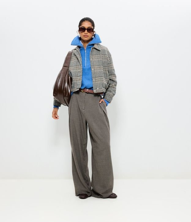 Casaco em polyvelour com estampa xadrez e caimento estruturado, ideal para composições modernas e aconchegantes. Possui manga longa, gola e barra levemente ajustada, oferecendo conforto e estilo para os dias mais frescos. Perfeito para complementar looks casuais e urbanos.