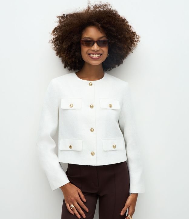 • Casaqueto em Tweed com Botões Metalizados e Lapelas Branco 1
