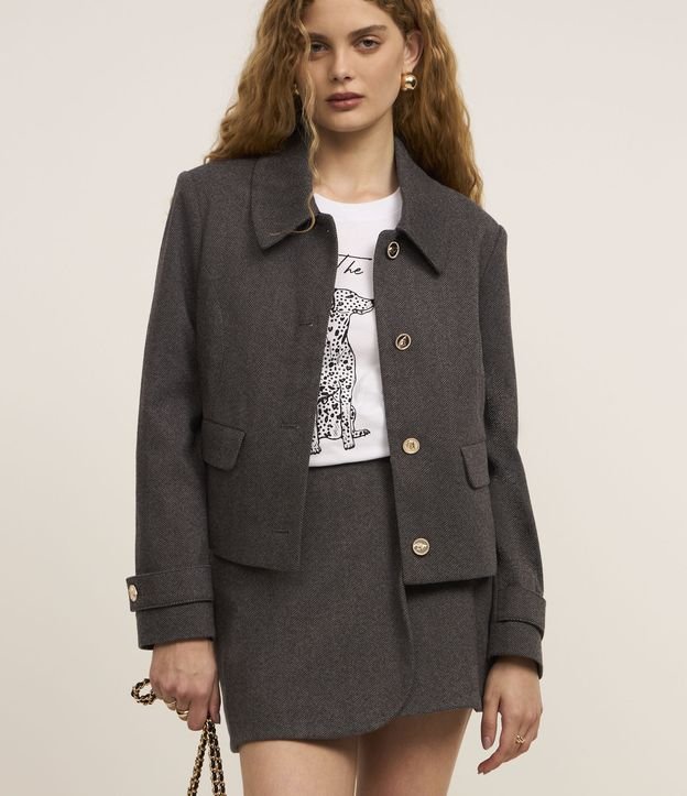 Casaqueto em Tweed com Textura e Botões Contrastantes