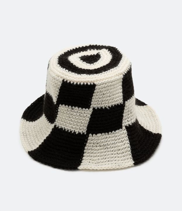 Chapéu Bucket em Tricô com Estampa Quadriculada