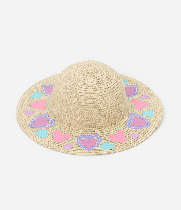 Chapéu de Palha Infantil Estampa de Corações - Tam Único Bege