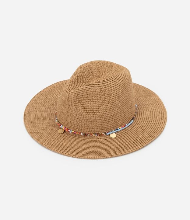 Chapéu Panamá com Aviamento de Miçangas e Medalhas Bege