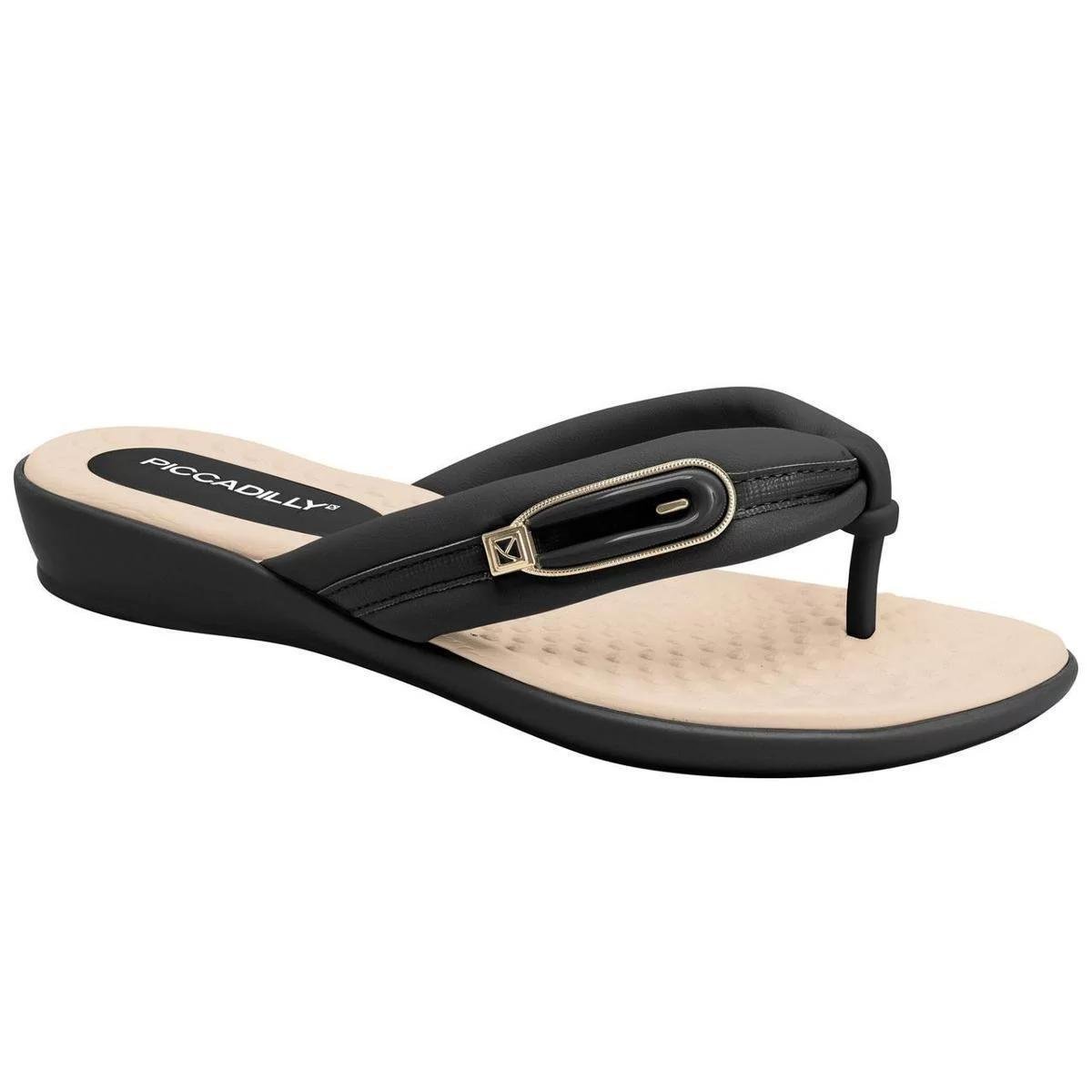 Chinelo Anabela Piccadilly Metal Logo - Preto e Bege Preto