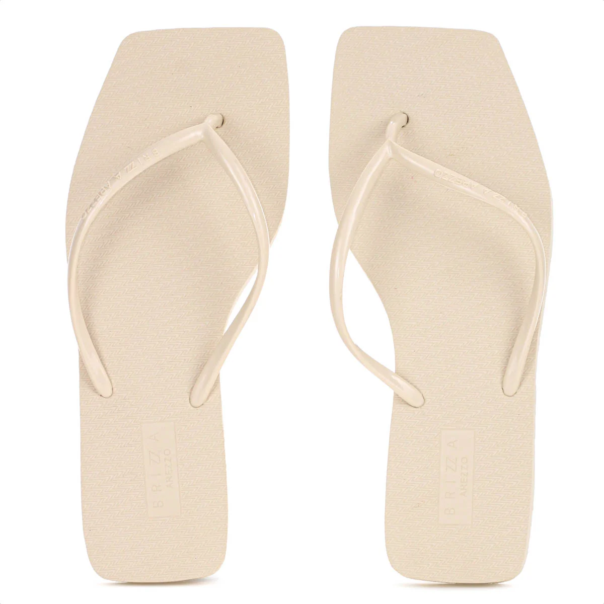 Conteudo da embalagem: 1 par de Chinelo Brizza Arezzo Bico Quadrado Tira Slim Bege - Feminino