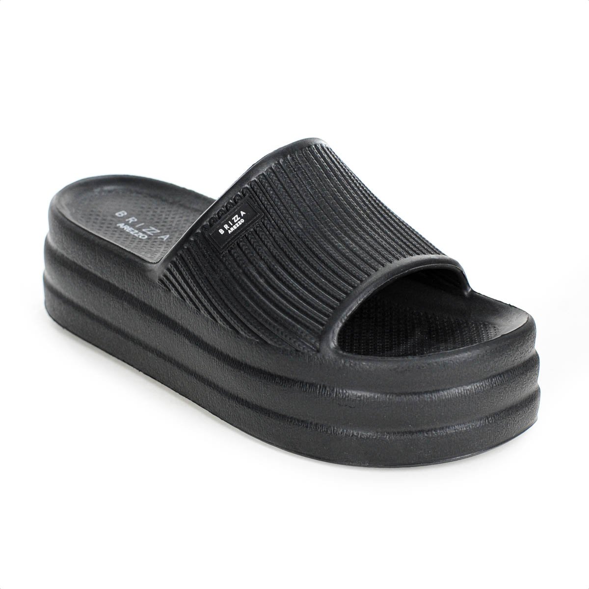 Estilo urbano com o conforto que acompanha seus passos! Chinelo Brizza Arezzo Slide Flatform Preto - Feminino Ficha Tecnica: Marca: Brizza Arezzo  Genero: Feminino  Cor: Preto  Material: Borracha resistente  Palmilha: Texturizada com nome da marca  Solado: Flatform com bico redondo Salto: Aproximadamente 6 cm Formato: Bico redondo  Tiras: Larga sobre os dedos e peito do pe, com tag Brizza em alto-relevo lateral  Indicacao de uso: Dia a dia, lazer e passeios Minimalista e cheio de presenca, o Chinelo Slide Flatform Brizza Arezzo e a escolha certa para mulheres que valorizam autenticidade com conforto. Porque inovar: Com seu design clean, tira larga e acabamento em alto-relevo, ele oferece versatilidade para compor desde looks diarios ate producoes com mais atitude. A palmilha texturizada proporciona bem-estar ao longo do dia, enquanto o formato slide deixa os pes livres com muito estilo. Conteudo da embalagem: 1 par de Chinelo Brizza Arezzo Slide Flatform Preto - FemininoParte superior do formulario