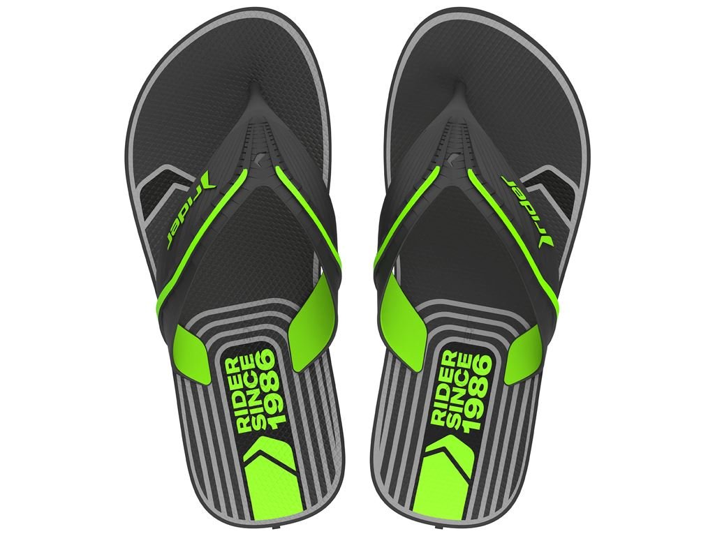 Chinelo Masculino Rider Way Logo Dedo Preto/Verde