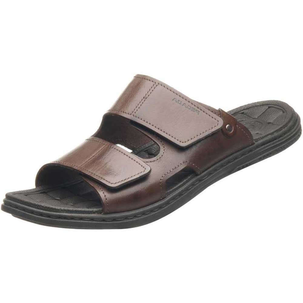 Chinelo Masculino Slide Tira Dupla Couro Pinhão Pegada 131283-01 Marrom