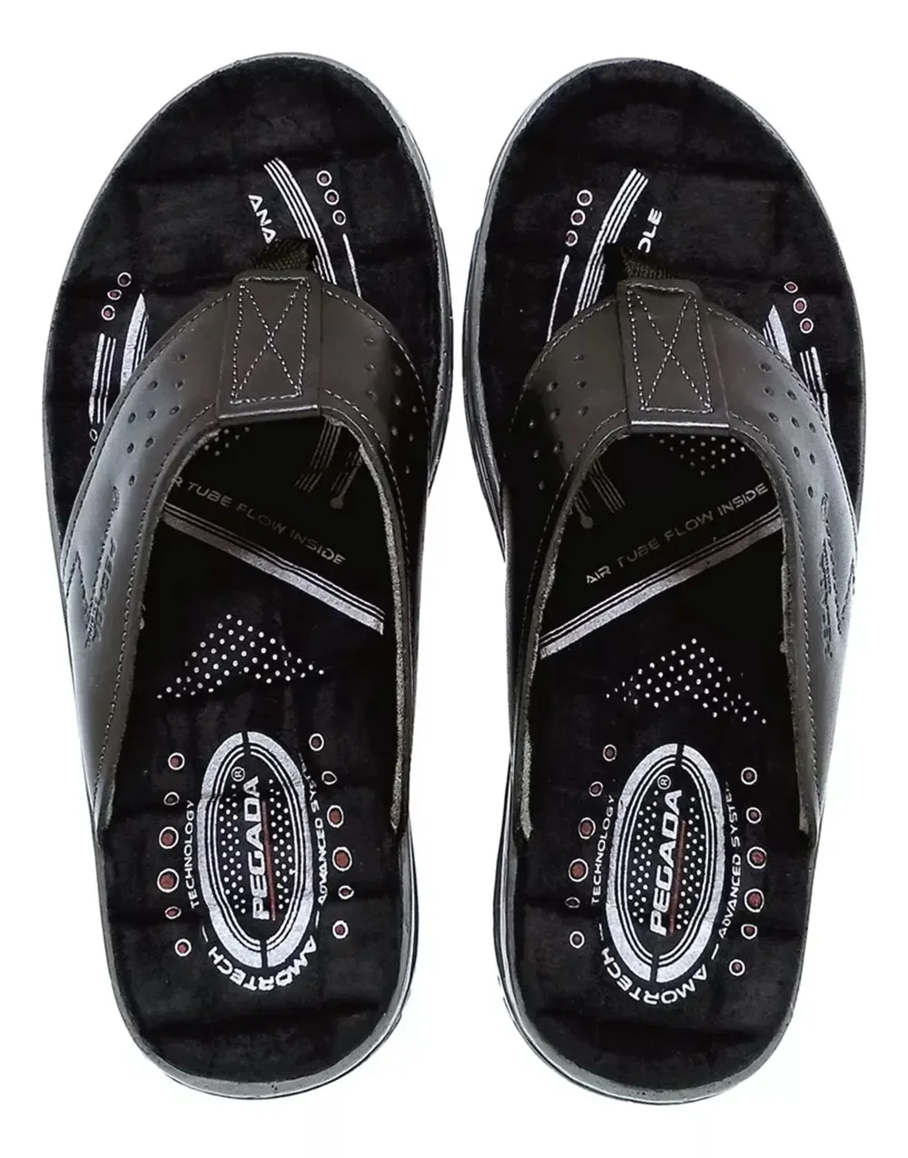 Chinelo Pegada Masculino em Couro Pinhão Preto
