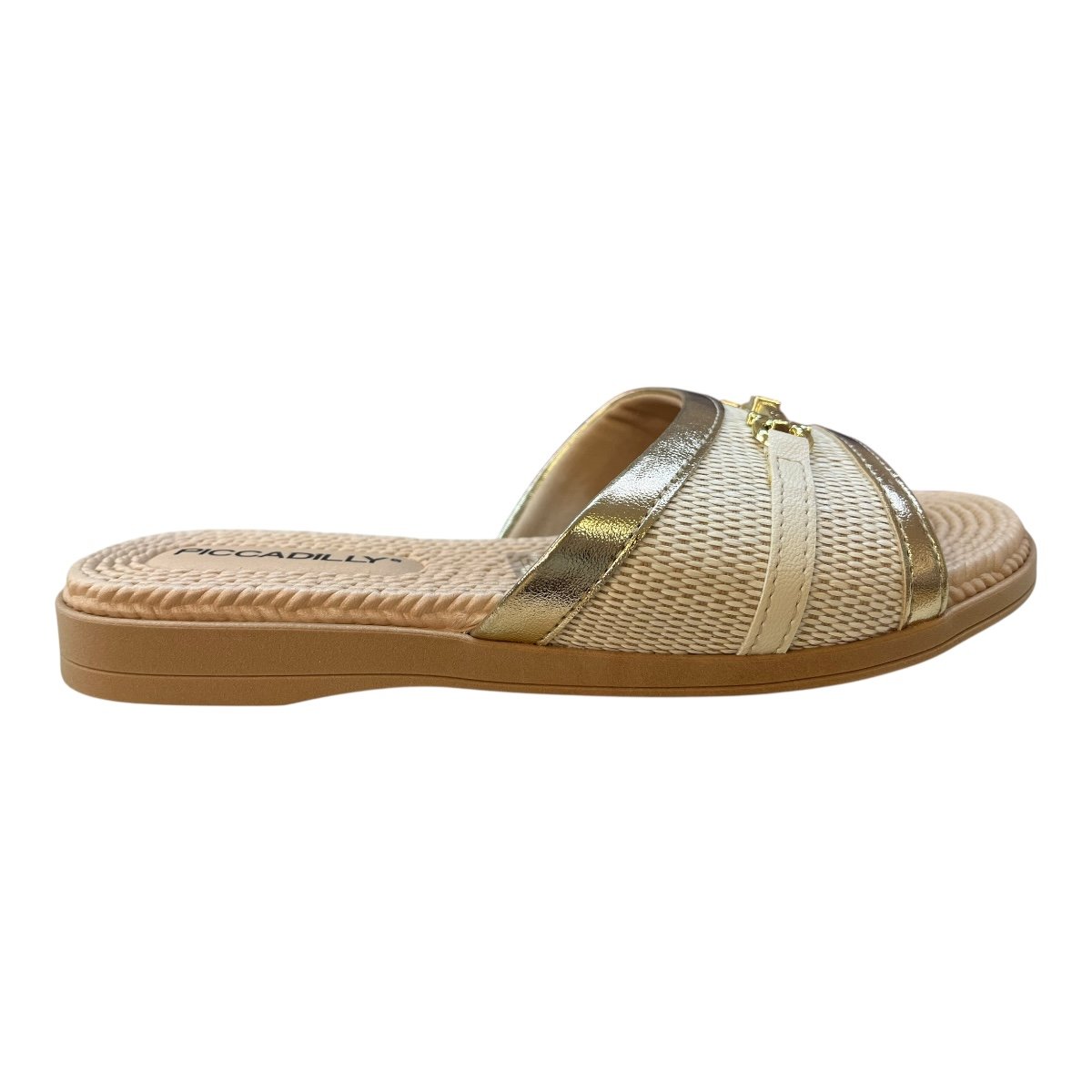 Chinelo Piccadilly Feminino Ultraconforto Slide Superleve Metalizado 513028 Dourado Dourado