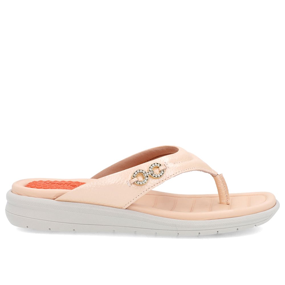 Chinelo cabedal em couro floater metal color na cor pessego suave.O modelo possui tecnologia Amortecedor, com uma gota de borracha em sua palmilha para amortecer o impacto da pisada.