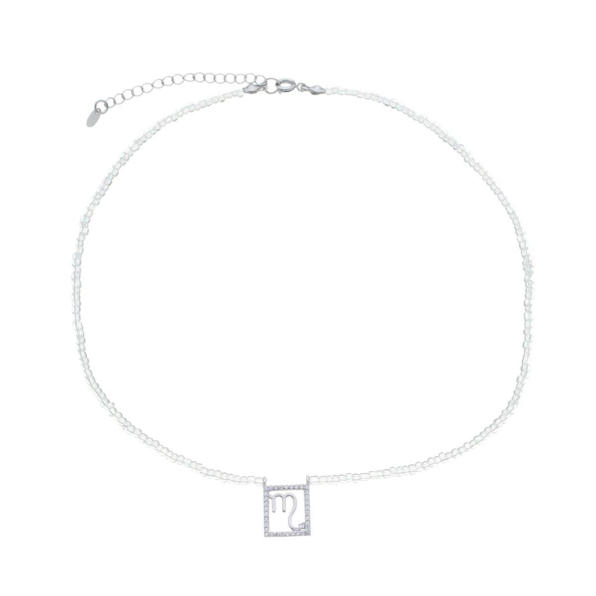 Choker Folheado a Ródio Miçanga Transparente e Pingente Signo Escorpião