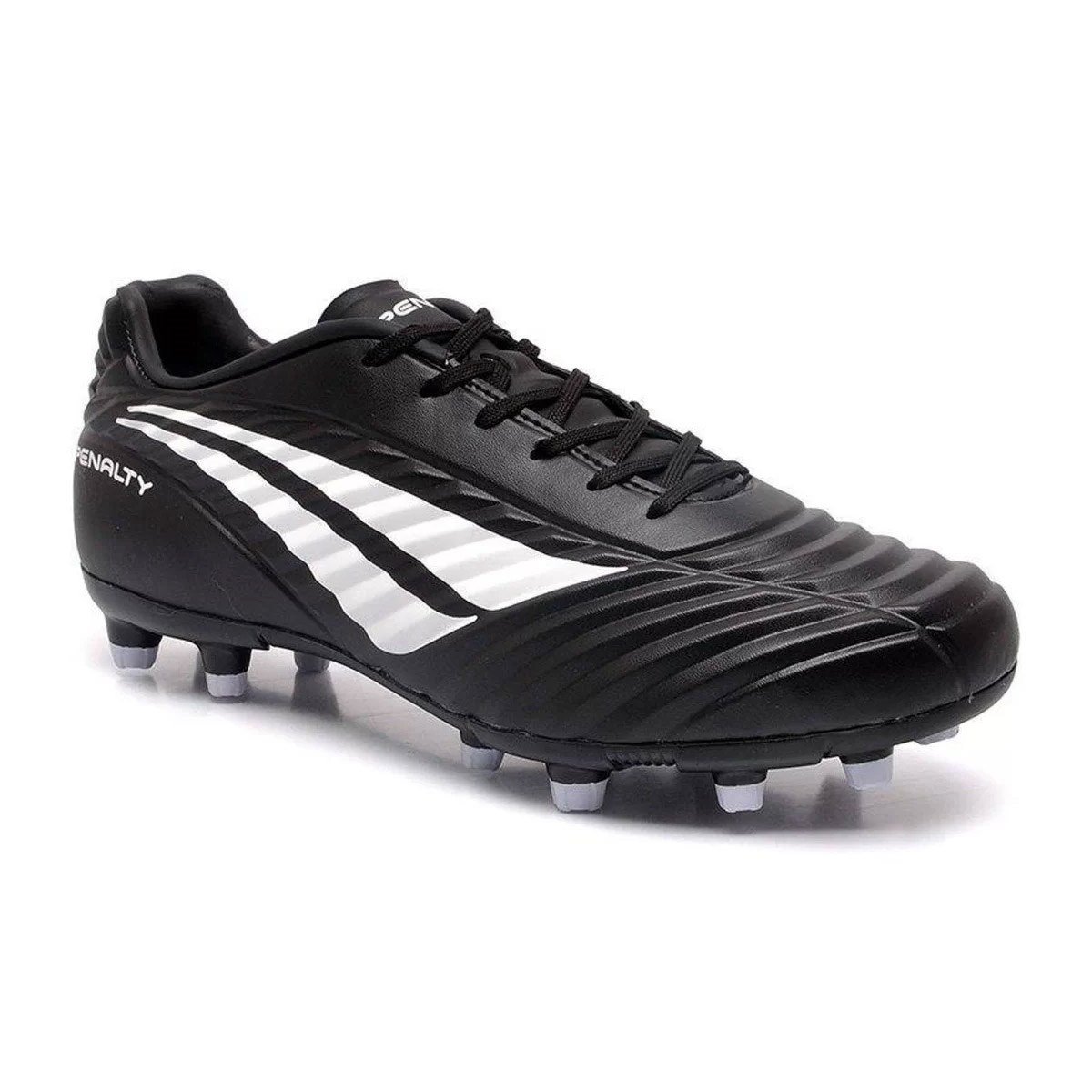 Descubra o campeão dentro de você com a Chuteira Campo Penalty Brasil 70 Neo XX. O controle da bola é favorecido pelo cabedal de material sintético com ondulações e recortes estrategicamente desenhados. Conta com fechamento por cadarço, palmilha removível e interior acolchoado, permitindo, assim, perfeito ajuste, melhor higienização e mais conforto. O solado de TPU possui travas que te darão mais aderência e velocidade para driblar seus adversários. De cor preta, exibe a logo da Penalty nas laterais em branco. Referência: 214211.