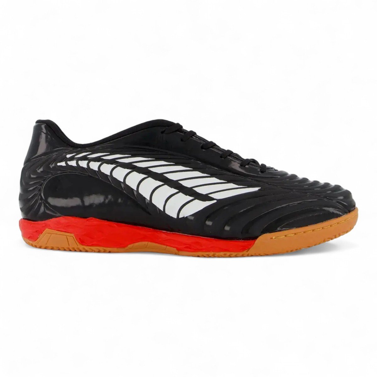 Entre os benefícios, destacam-se o conforto nos pés durante passes e chutes, o solado emborrachado antiderrapante e o formato anatômico que se ajusta perfeitamente aos pés. A palmilha em PU Conformada contribui para a absorção de impactos, tornando cada jogada mais suave e eficiente.