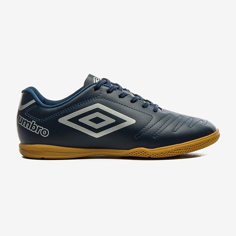 Jogue com classe, vença os adversários. O tênis de futsal Umbro Class eleva seu jogo. Seu cabedal, construído em material sintético, possui costuras programadas para maior reforço e auxílio na flexão do material. Ele garante velocidade e ótimas passadas em quadra. Solado em borracha mantém o pé firme durante as corridas e dribles desconcertantes.