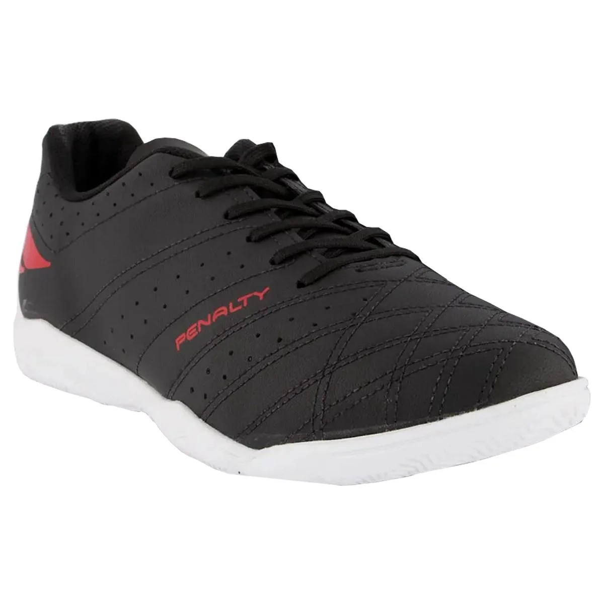 Pratique seu esporte preferido e melhore sua performance com mais conforto e qualidade usando a chuteira Futsal Penalty Americas XXI. Com seu cabedal desenvolvido em material sintético que oferece mais resistência ao produto. O modelo conta com fechamento em cadarço, lingueta flexível e forro têxtil acolchoado que entrega bem-estar durante o uso. O solado em borracha que garante mais tração, traz pontos de giro que facilita a movimentação nos dribles. O design vem em cor preta e traz a logo da marca Penalty em vermelho na parte traseira e na lateral da chuteira. Referência: 124220.
