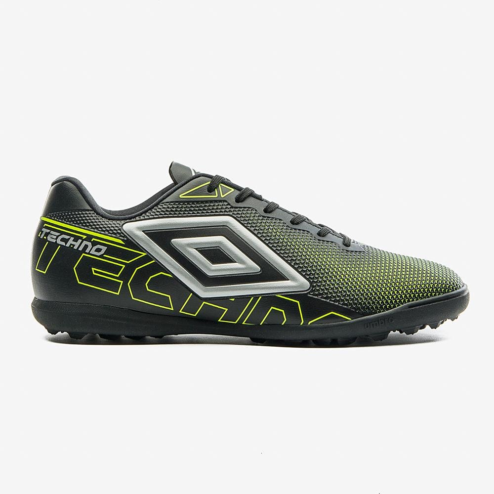 A Chuteira Society Umbro Techno traz design moderno e imponente, aliado ao grip frontal para controle preciso da bola. O grafismo 3D adiciona estilo diferenciado, enquanto o cabedal com textura na região frontal confere precisão no chute. Possui ainda forro Mesh respirável, acabamento luvado, palmilha macia e solado com tecnologia STEALTH de amortecimento no calcanhar.