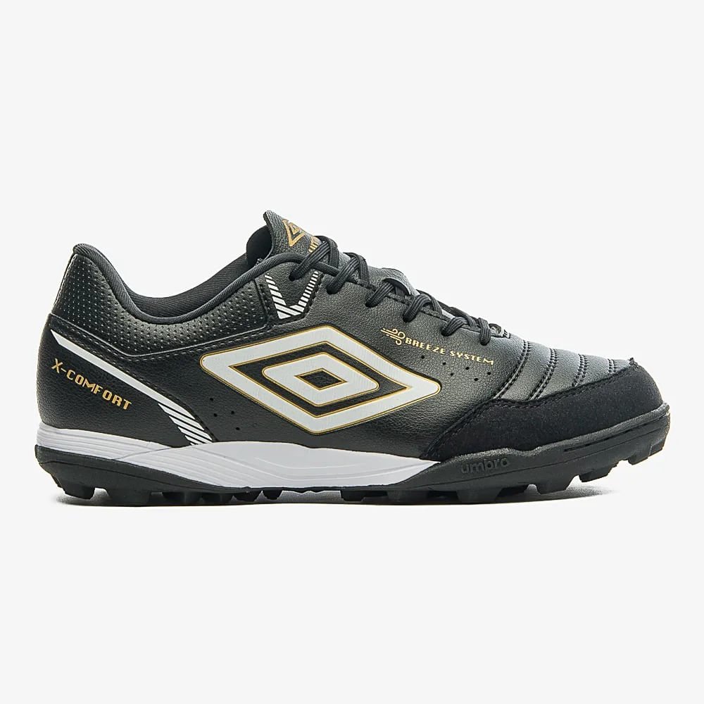 A Chuteira Society Umbro X-Comfort foi desenvolvida para jogadores que buscam desempenho e conforto nos campos de grama sintética. Com um design moderno e dinâmico, apresenta detalhes vibrantes que destacam a identidade esportiva da marca. Sua configuração de travas multidirecionais garante excelente tração e estabilidade, enquanto o ajuste anatômico e o amortecimento interno proporcionam conforto em jogos de alta intensidade.