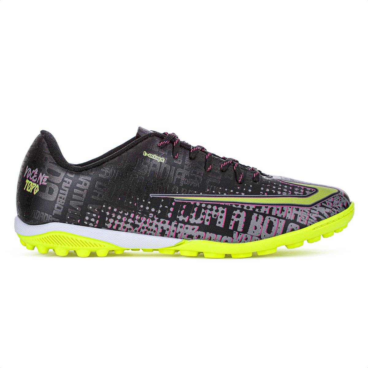 Chuteira Topper Society Resenha Preto Rosa e Amarelo - Masculino