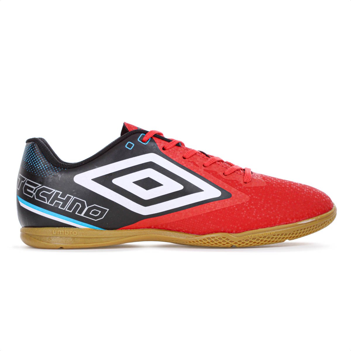 Domine o jogo com controle, aderencia e design inovador! Chuteira Umbro Futsal Techno II Vermelho Preto e Azul - Masculino Ficha Tecnica:  Marca: Umbro  Cor: Vermelho, Preto e Azul  Genero: Masculino Cabedal: Sintetico laminado com textura plana e efeito de contraste Forro: Poliester  Palmilha: EVA forrado em tecido (90% EVA, 10% Poliester)  Solado: Borracha antiderrapante e monocolor com tecnologia HYPERGRIP para tracao e aderencia Fechamento: Cadarco Lingueta: Fina e flexivel Indicacao: Jogos de futsal para jogadores jovens e antenados  Detalhes: Efeito pixel em acabamentos fosco e brilhante, arte grafica em serigrafia e Diamante Umbro destacado na lateral Voce ja perdeu o controle da bola em momentos decisivos por falta de aderencia no solado? A Chuteira Umbro Futsal Techno II elimina esse problema! Por que investir? Equipada com tecnologia HYPERGRIP, oferece tracao superior para mudancas rapidas de direcao e controle preciso da bola. Seu cabedal laminado com acabamento moderno em pixel combina estilo e performance, garantindo um ajuste perfeito aos pes. Nao arrisque seu desempenho - jogue com a chuteira que acompanha seu ritmo e faz a diferenca na quadra! Conteudo da embalagem: 1 par de Chuteira Umbro Futsal Techno II Vermelho Preto e Azul - Masculino