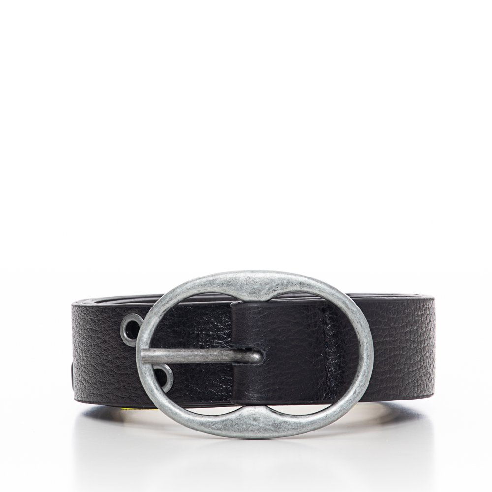 Cinto confeccionado Em couro Tira Com Detalhes Em Ilhoses Ilhosy Preto