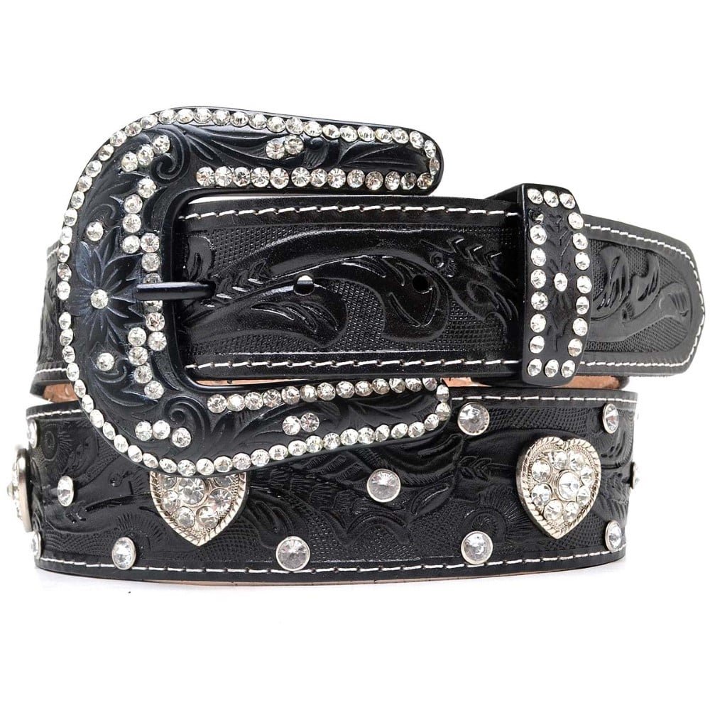Cinto Couro Country Feminino Fivela Preta de Strass Brilho Rainha do Rodeio Bordado Preto