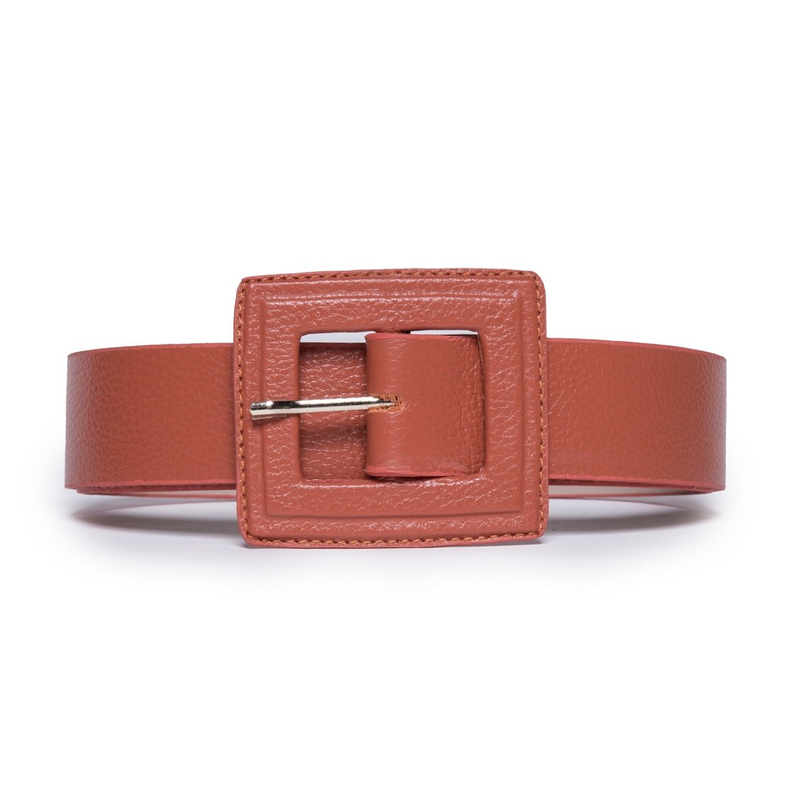 Cinto Couro Fivela Forrada Pespontado Rety Laranja Marrom