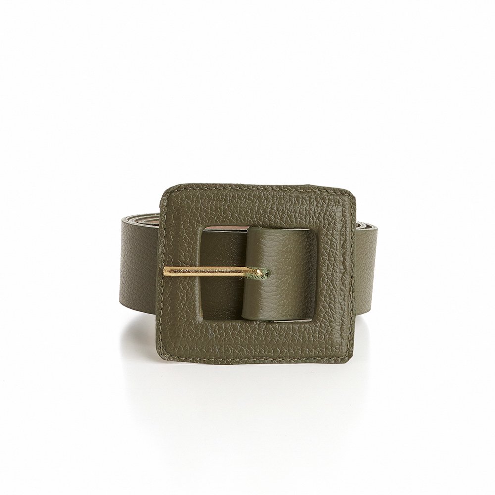 Cinto Couro Fivela Forrada Pespontado Rety Militar Verde