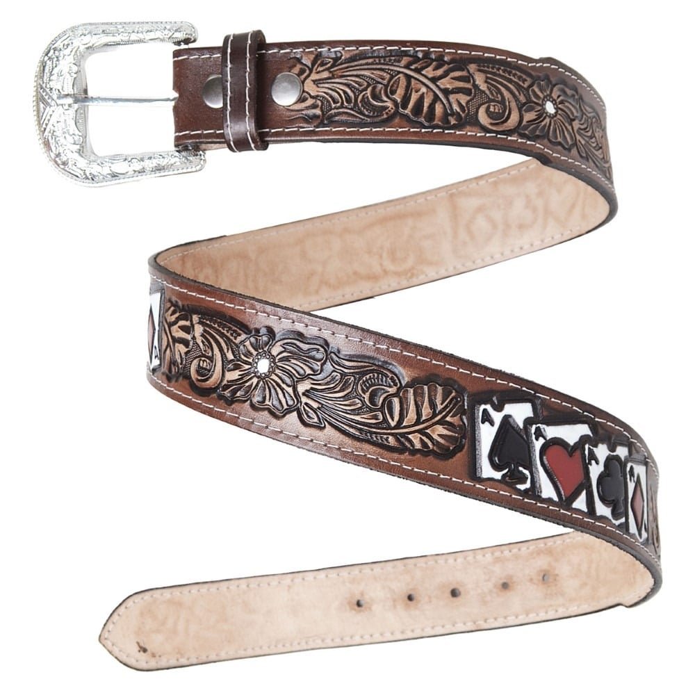 Cinto em Couro Detalhe Baralho Cartas Fivela Removivel Artesanal Estampa em Alto Relevo Cavalgada