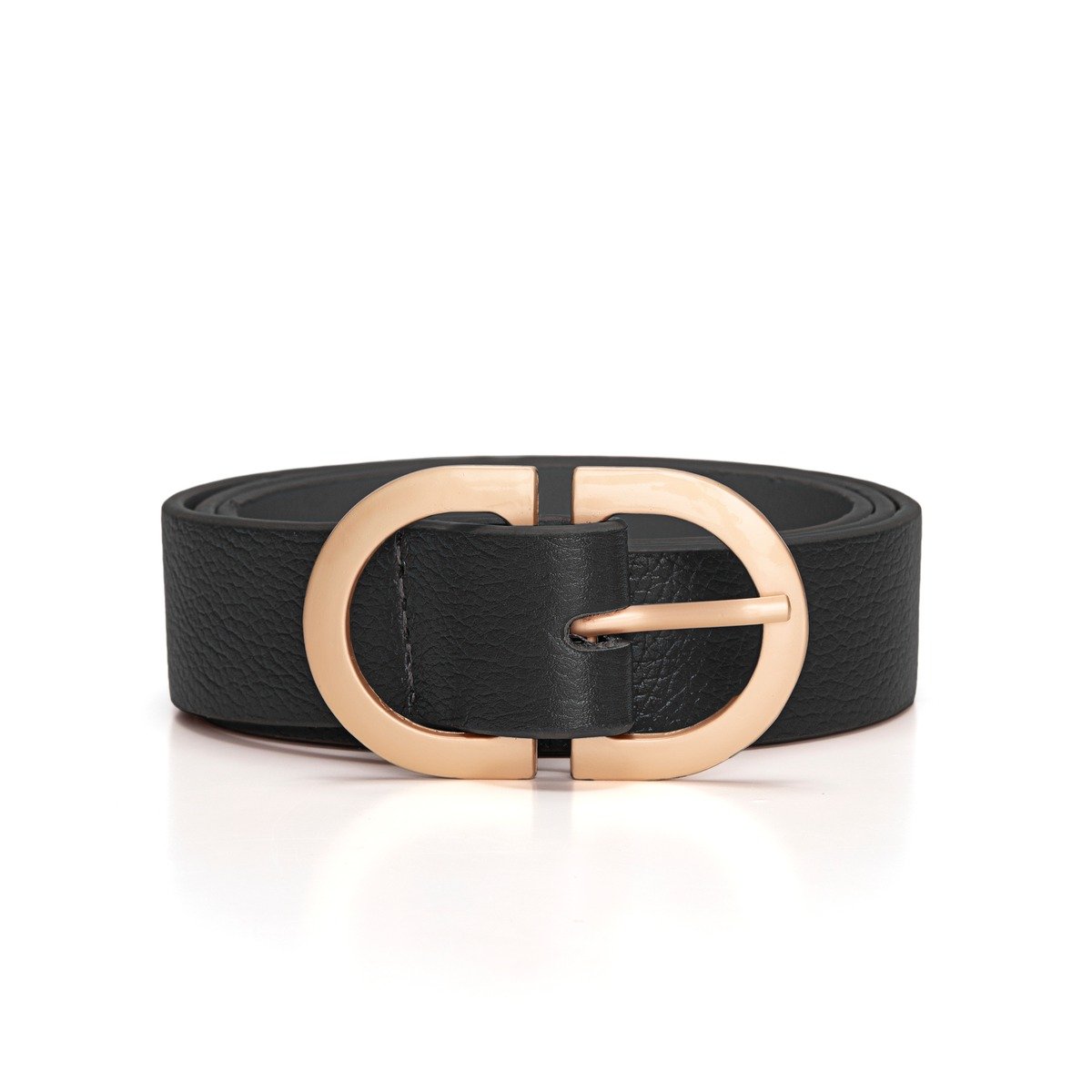 Cinto Em Couro Fivela De Metal Com Acabamento De Brilho Resinado Castilho - Preto