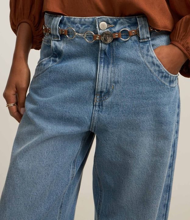 Cinto feminino, confeccionado em metal, com discos e medalhas e fechamento lagosta.