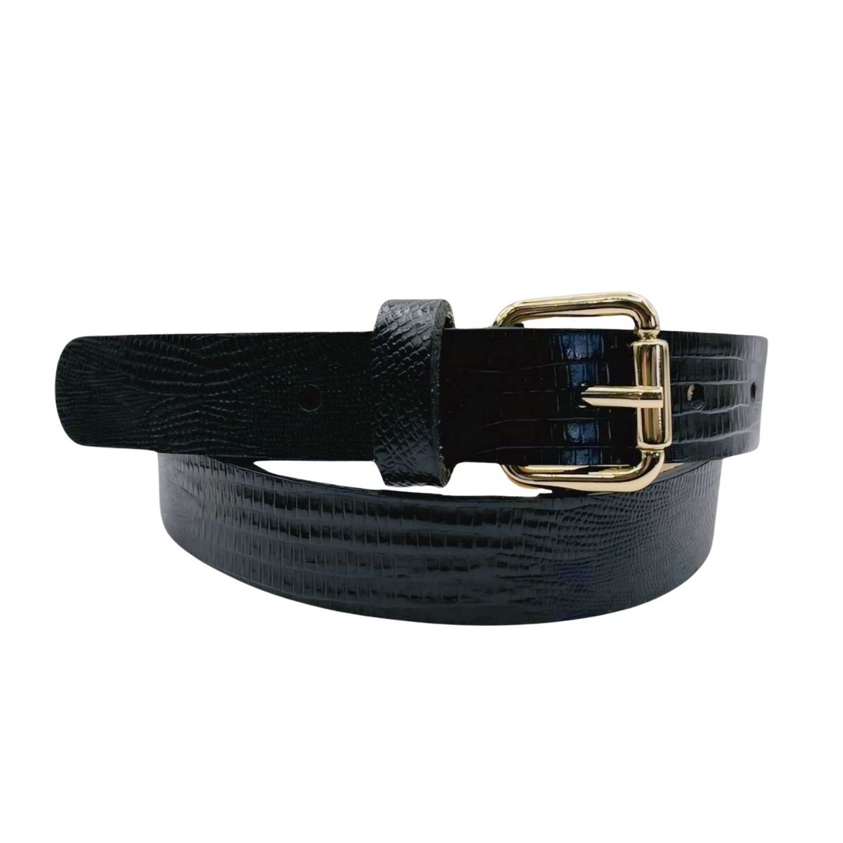 Cinto Feminino Couro Legitimo Fivela Quadrada Rolete Preto 2,5 cm de Largura