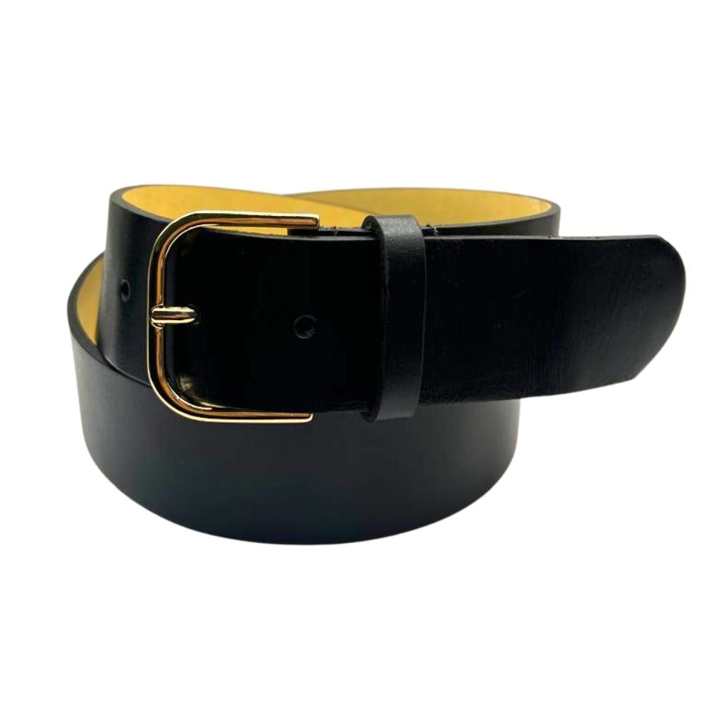 Cinto Feminino de Couro Legitimo Preto 3 cm de Largura Fivela Dourada Qudrada
