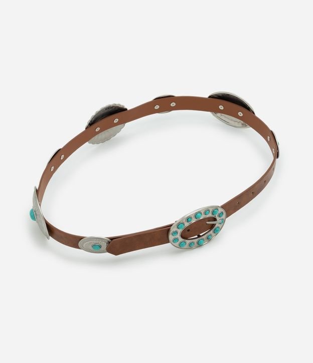 Cinto Largo em PU com Detalhes Ovais Metalizados Marrom