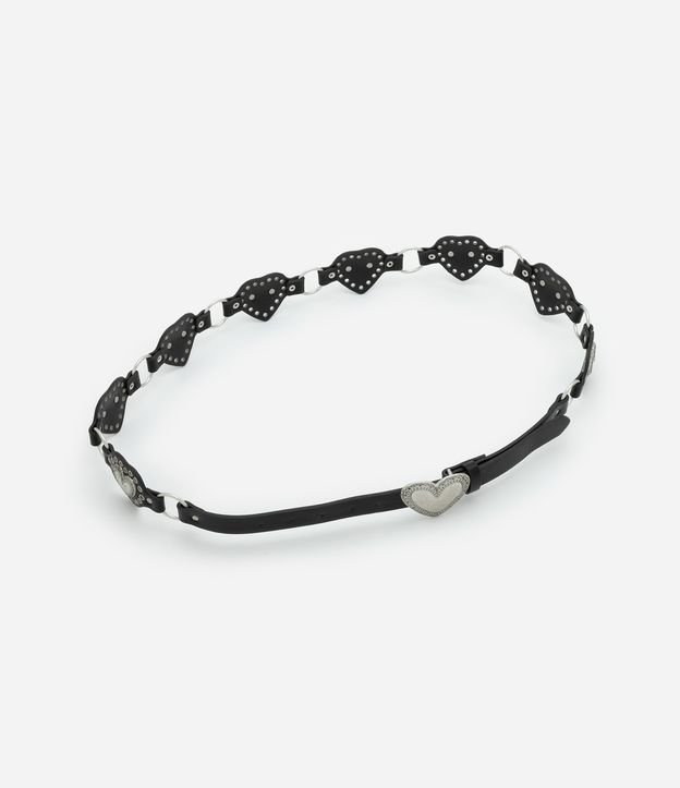 Cinto Médio com Rebites e Corações Curve & Plus Size Preto