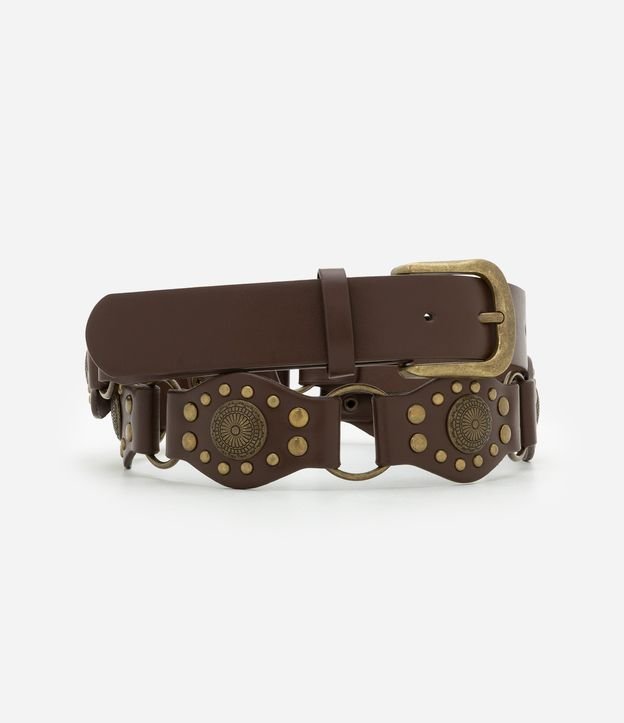 Cinto Médio com Rebites e Intercalado por Argolas Curve & Plus Size Marrom