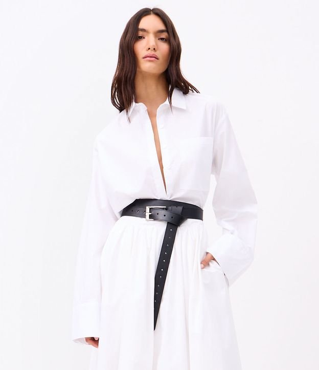 Cinto Médio em Couro Alongado e Fivela Quadrada Metalizada Preto