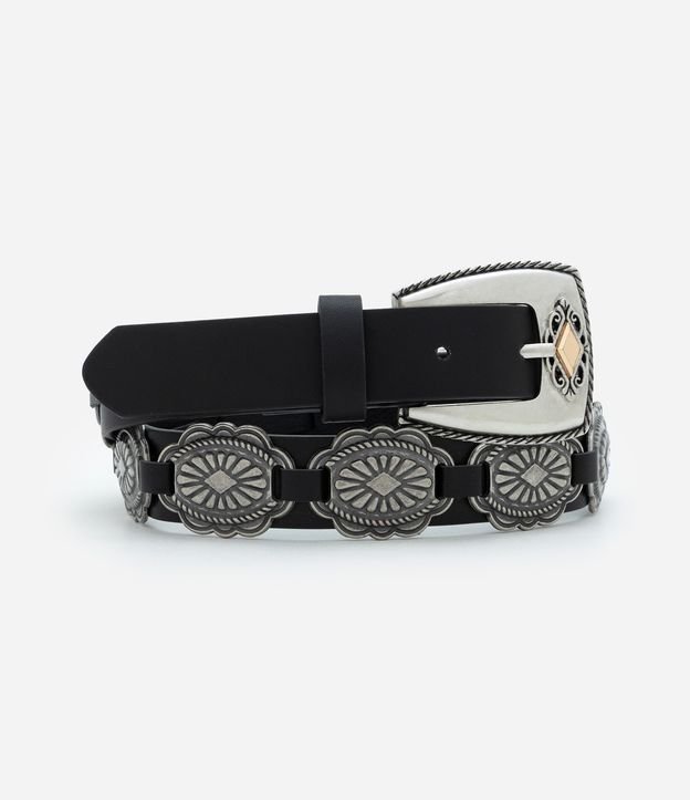 Cinto Médio em PU com Medalhas Aplicadas Preto