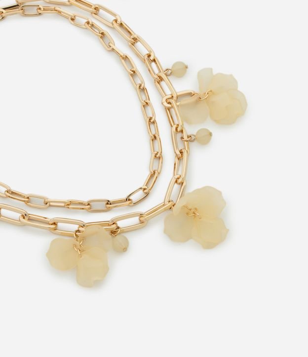Cola Camadas com Correntes de Elos e Pingentes de Pétalas Dourado
