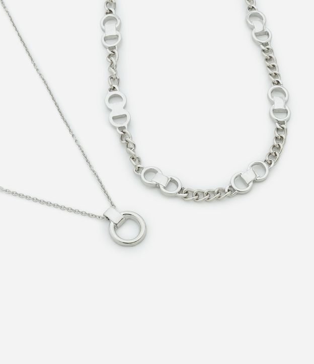 Colar Camadas com Corrente de Elos e Pingente de Circulo Prata