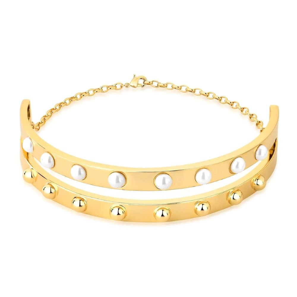 Colar Choker Duplo Pérolas Semijoia Banhada a Ouro 18K Ania Store Dourado